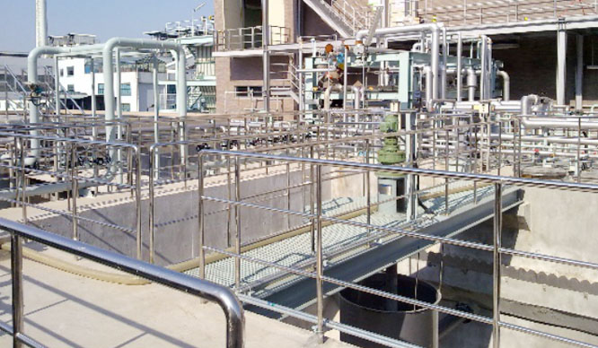 平流式沉淀槽構造簡單,沉淀效果好,工作性能穩定,使用廣泛,但占地面積較大。需加設刮泥機進行機械排泥。